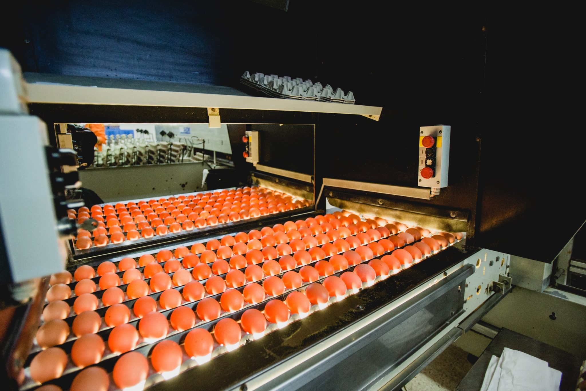 A AGRO-OVO possui um centro de classificação com uma máquina automática de classificação e embalamento, em que os ovos são inspecionados, pesados e separados por tamanho (XL, L, M ou S) em embalagens para consumo industrial ou doméstico.